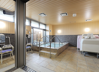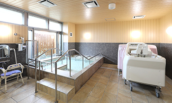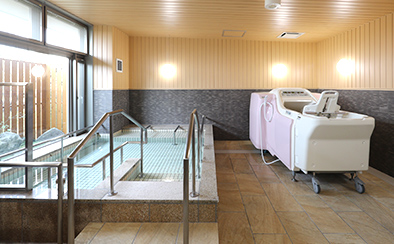 ご利用者さまの体調や状態に合わせて、一般浴または機械浴をご案内しています。入浴によって身体の清潔が保たれ、心身ともにリフレッシュできます。スタッフが安全に配慮しながらサポートいたしますので、ご不安なことがございましたら遠慮なくお申し出ください