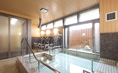 広々とした浴槽にたっぷりの湯で、手足を伸ばして入浴をお楽しみいただけます。浴室、浴槽内には手すりを設置しています。