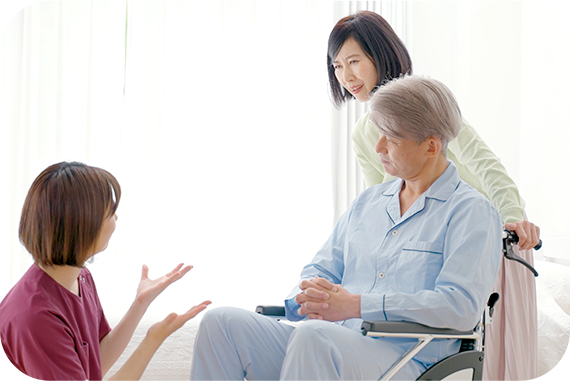 面会時間は午前8時30分〜午後8時までです。これ以外の時間に面会をご希望の場合は、ご相談に応じます。